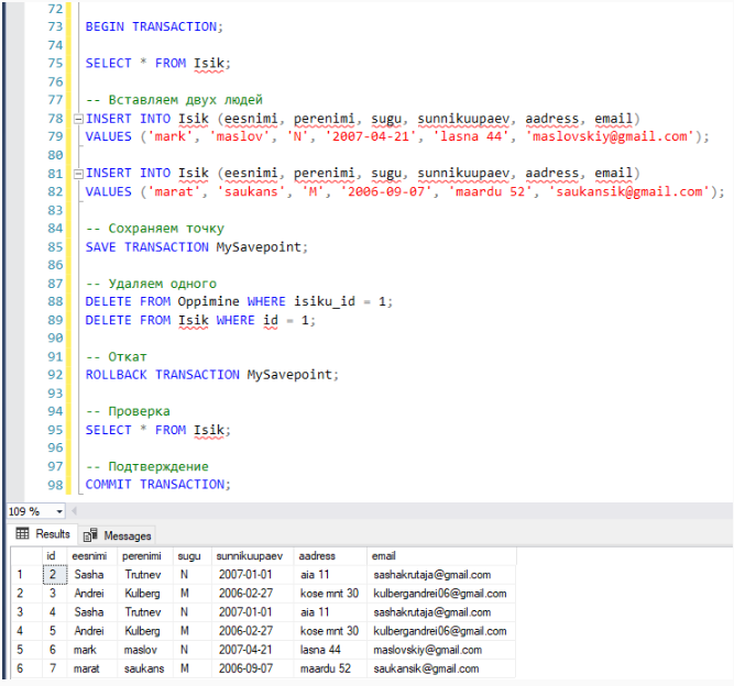 Transaktsiooni koostamine ja kontroll