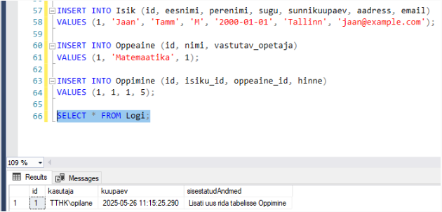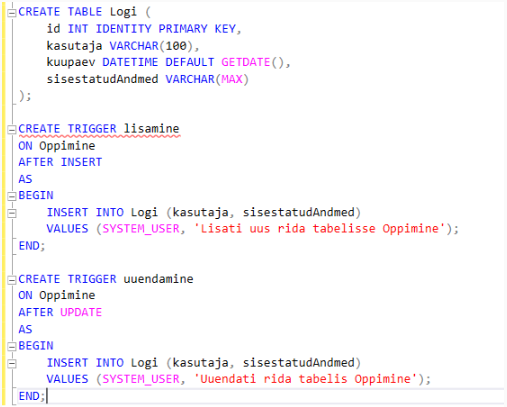 Tabeli - Logi loomine ja trigeri