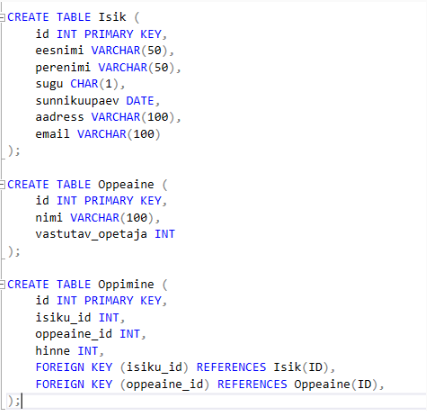 Andmebaasi loomine