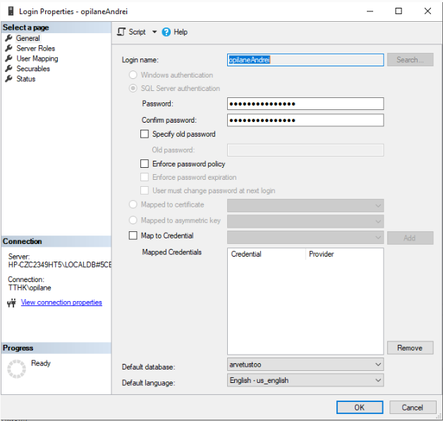 Kasutaja loomine